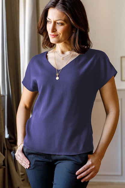 - Basic Kurzarmbluse mit femininem V-Ausschnitt
